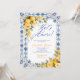 The back of the invitation continues the blue tile and watercolor lemon floral design, creating a cohesive and polished stationery set. Easily personalize with your event details to create a memorable and beautifully styled bridal shower invitation.