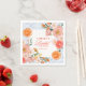 Inspired by the beauty of an Italian summer celebration, these citrus themed bridal shower napkins bring together bright orange tones and elegant Mediterranean blue tiles to create a sophisticated yet playful party aesthetic. The design featuring spritz cocktail glasses, citrus oranges, and blooming florals pairs beautifully with an Aperol spritz bar, Mediterranean themed tablescape, or citrus garden bridal shower.