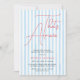 This bridal shower invitation features a clean and modern Italian-inspired design. The background showcases soft blue and white vertical stripes, creating a fresh and airy look. At the center, the phrase “That’s Amore” appears in an elegant red script font. The flowing typography adds romance and personality to the layout.