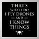 That’s What I Do I Fly Drones And I Know Things. This funny drone hobbyist accessory is a perfect Christmas or birthday gift for anyone who loves flying drones, quadcopters or a UAV. Great gift for a commercial drone pilot & operator! If you love to fly and operate drones as a hobby, love drone racing, or enjoy taking video with your drone or quadcopter, then this design is for you!