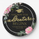 The Adventure Begins Hot Pink Floral Grad Party Paper Plate