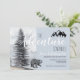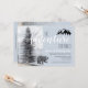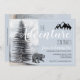 Adventure awaits, rustic woodlands bear 1st birthday party invitation in soft pastel grey blue hues, with a majestic forest pine tree and mountain silhouette. Personalise for your celebration.