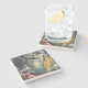 The coasters are gorgeous, a quality feel and heavy weight. They look like a precious archeological find. A rustic stone juxtaposed with a modern floral black and white print. I like the way the print goes slightly imperfect on the cut stone edges giving them a kind-of natural beauty.