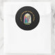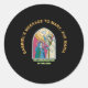 This design features a stained-glass-style illustration of The Annunciation, where the Angel Gabriel delivers his message to the Virgin Mary, with the Holy Spirit symbolized by a dove above them. The illustration is crowned by the curved text "GABRIEL'S MESSAGE TO MARY: AVE MARIA" and the title "THE ANNUNCIATION OF THE LORD" at the bottom, all set against a contrasting black background.