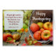 A delightful card for Thanksgiving, with a lovely colourful basket of apples and fall leaves.
