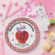 The Apple Of Our Eye Paper Plate - Now we have some secret “in-cider” information for you all. May we present this stunning and very “a-peeling” paper plate design. Featuring a friendly little candy apple. Featuring a friendly little candy apple.In the background, a bright chequered pattern, inspired by a picnic tablecloth.Don't forget to pop by our store for all your matching party supplies and invitations.