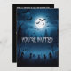 A creepy army of shadowy figures under a night sky with a full moon and plenty of bats makes the perfect Halloween invitation. The back is solid black, with space for details about the party. Could work for teen parties, too.