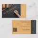 The Art Workshop Yellow Artist Business Card shows an art activity on a black surface with art supplies. It has a clean typography, with a yellow angled business name on centre and the business services list on front side. The business name at the back is on a black strip vertical position. Also, the business details are in a yellow background plus the QR code. The entire concept is contemporary and playful makes it exciting for an artist business card.