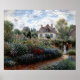 The composition features a variety of blooming flowers, with an emphasis on vibrant colours and lush greenery. The use of loose, impressionistic brushstrokes brings a sense of movement and life to the scene, effectively conveying the textures and shapes of the plants and flowers. The garden path leads the viewer's eye through the composition, inviting them to explore the serene and picturesque setting.