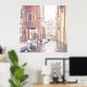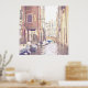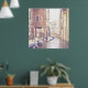 This digital poster features a view of Venice Italy that not many tourists get to see. It is a glimpse into the everyday life of the backstreets of this famous European travel destination and done in the style of a vintage travel poster with the city name  in a fancy open face faded brown font.