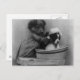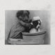 A dressed up puppy dog giving another puppy dog a bath in a tub. Vintage photo from 1914.