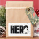 Typography graphic of the word: "Hero", featuring the outline of Batman at the end with a swarm of bats.