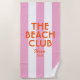 The Beach Club beach towel is perfect for your beach getaway... pink cabana stripes with vibrant orange "The Beach Club" lettering. Personalise with the details of your beach trip... year and beach destination. Perfect for a family or friends beach trip or beach club bachelorette or as a memento for a past trip. Matching accessories available in The Beach Club Ibiza Pink Cabana Stripe Collection.
