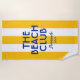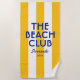 The Beach Club beach towel is perfect for your beach getaway... yellow cabana stripes with vibrant blue "The Beach Club" lettering. Personalise with the details of your beach trip... year and beach destination. Perfect for a family or friends beach trip or beach club bachelorette or as a memento for a past trip. Matching accessories available in The Beach Club Sorrento Yellow Cabana Stripe Collection.