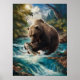 A majestic bear is depicted holding a shimmering fish in its paws, capturing a moment of natures raw beauty and strength.