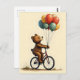 This design captures a moment of pure, innocent joy with a whimsical illustration of a cheerful teddy bear. The bear is happily riding a bicycle with a bunch of colorful balloons tied to it, symbolizing freedom and fun. This delightful image is perfect for children's items, or for anyone who appreciates a sweet, lighthearted design that brings a smile to their face.