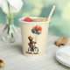 This design captures a moment of pure, innocent joy with a whimsical illustration of a cheerful teddy bear. The bear is happily riding a bicycle with a bunch of colorful balloons tied to it, symbolizing freedom and fun. This delightful image is perfect for children's items, or for anyone who appreciates a sweet, lighthearted design that brings a smile to their face.