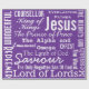 Jesus is a beautiful name for a wonderful Saviour. It means "God who came to Save us". Here are seventeen names that are used in the Bible to describe Jesus. Trendy purple background and white lettering with stylish fonts. Easy to use templates to add (or subtract) text. You can change the colours too.