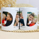 Celebrate your dad with this custom "The Best Dad in the World" photo collage mug! This mug design features the word "DAD" boldly displayed in a cut-out style, with space to showcase three of your favourite photos inside the letters. Above and below, the text reads "THE BEST" and "IN THE WORLD," complete with a heart accent replacing the "O" for an extra loving touch. This personalised mug is a heartwarming way to remind your dad just how much he means to you every day!