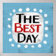 "The Best Day" is a cute text design in light blue with black and red text, along with a white accent shape and white textured whimsical dots surrounding it.