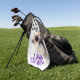 The Best dog dad Shih Tzu Not Fathers Day Golf Towel. Cool cute posing Shih tzu with custom text. Customise and personalise fun dog lovers gift idea. Funny adorable cuddly white brown female dog with big black nose, top knot pony tail and colourful sun glasses on her head.