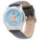 The leather band makes it seem like an “older kids” watch. Easy to read the time. Clear printing and image.