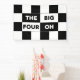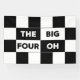 40th birthday party banner features a bold black and white checkered pattern with the words "The Big Four Oh" in alternating white on black and black on white text.