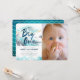 This cool boy's 1st/first birthday photo invitation features a white background with splashing waves. The reverse side features a faux glitter sea green background with wave patterns. Personalise for your needs. You can find more matching products at my store.