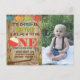A colourful fishing themed first birthday invitation to help celebrate 'The Big One'. Pops of red, green, orange, and blue fish and gear provide a colourful contrast to the distressed wood background. The back features a fisherman in a boat with the phrase 'Gone Fishing'. Add a photo of your precious little one.