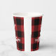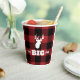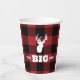 Buffalo plaid paper cup featuring The Big One and drop tine deer. Perfect for a hunting theme first birthday party!