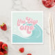 The Big One! Surfing Beach 1st Birthday party napkins with turquoise waves and pink writing.