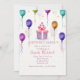 Helium balloons rise towards the sky and a birthday present, presented with love, garnishes the centre of this festive birthday party invitation. (FP) <br/><br/>The card is easy to customise with your wording, font, font colour, paper shape options and choice of six paper types.<br/><br/>Not exactly what you're looking for? All our products can be custom designed to meet your needs at no extra charge.<br/><br/>Simply contact us at askpixieprints@aol.com.<br/><br/>Coordinating products available: Just ask us!