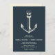 Nautical chic wedding invitation features a vintage style hand drawn anchor illustration in beige colour on navy blue background