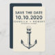 Designed to match our The Blue Compass wedding invitations and accessories this nautical chic weddin save the date features a vintage style hand drawn Anchor illustration in navy blue.
