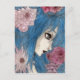 Deep ocean blue nymph with pink flowers. Hand drawn by eLaine.