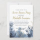Elegant nautical birthday invitation for beachside celebrations features a sapphire and blue watercolor illustration of sea corals.