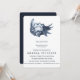Designed to match our Seahorse and Starfish wedding invitations and accessories this nautical chic wedding bridesmaids luncheon features a vintage style hand drawn watercolor seashell illustration in navy blue.
