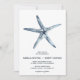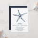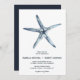 Nautical chic wedding invitation features a vintage style hand drawn starfish watercolor illustration in navy blue.