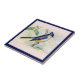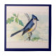 Ceramic Tile with a vintage drawing of a Blue Tufted-Titmouse bird with blue, white, yellow, and black feathers. This coloured drawing of the Blue Tufted-Titmouse is from the old-fashioned Arm and Hammer Baking Soda advertising card series.