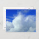 A postcard with an attractive sky photo, cotton wool like clouds against the vivid blue heavens.