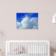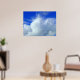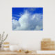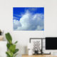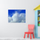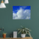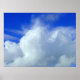 A poster with an attractive sky photo, cotton wool like clouds against the vivid blue heavens.