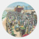 The waves are rolling in on the beach below the boardwalk where pedestrians in old-fashioned clothing and motorised carts move slowly by the attractions, one of which reads, 'Japanese Ping Pong.' A vintage postcard from 1908.