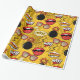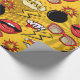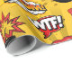 A fun retro wrapping paper pattern of bombs, lips, speech bubbles and sunglasses in bright shades of red and gold. Text in the pattern reads 'WTF', 'Oops' and 'Boom'. Search ID553 to see other products with this design.