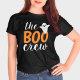 Modern family matching Halloween shirt design features "The Boo Crew" text in orange and white lettering with a little ghost accent. Order for each member of your crew.