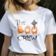 Modern family matching Halloween shirt design features "The Boo Crew" text in orange with a little ghost accent. Order for each member of your crew.