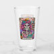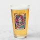 Vibrant, colourful design featuring a funny tarot card with a female skeleton. The skeleton has wild pink hair with flowers in it, a sugar skull face, and is holding an open book. The colourful text reads: "The bookworm". This design is available on a wide variety of products.