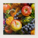 This colourful jigsaw puzzle boasts a bountiful harvest including crispy apples, orange pumpkins, fresh herbs, concord grapes, red cabbage and gourds. A delicious display of fresh fruit and vegetables.