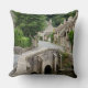 Square throw pillow with the bridge over Bybrook River in the small, quaint village of Castle Combe with houses built out of honey-coloured stone in the Cotswolds, England, UK.