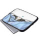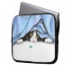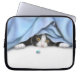 Original fine art design of a cute young Tuxedo kitten playing with a bug by artist Carolyn McFann printed on a quality computer laptop sleeve for cat lovers.