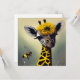 Fun flat greeting card features AI generated surreal digital art painting of a whimsical giraffe morphed with a bumblebee.